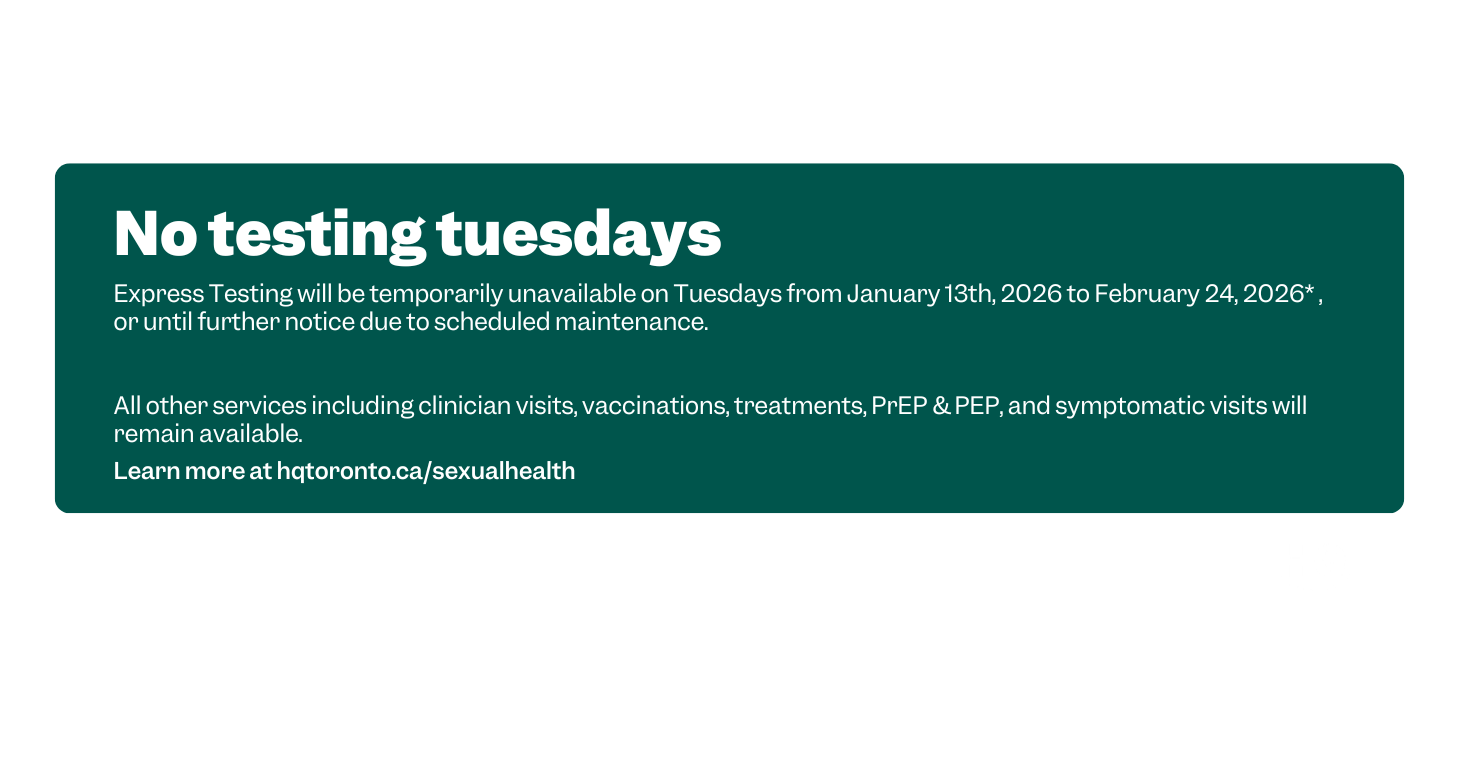 HQ Toronto at 790 Bay is a community-focused healthcare center for cis guys into guys, as well as two-spirit, transgender, and AMAB (assigned male at birth) non-binary individuals. It offers a variety of holistic health and wellness services without the need for appointments. HQ is an affirming, sex-positive, and safe space for managing sexual, mental, physical, and emotional health.
