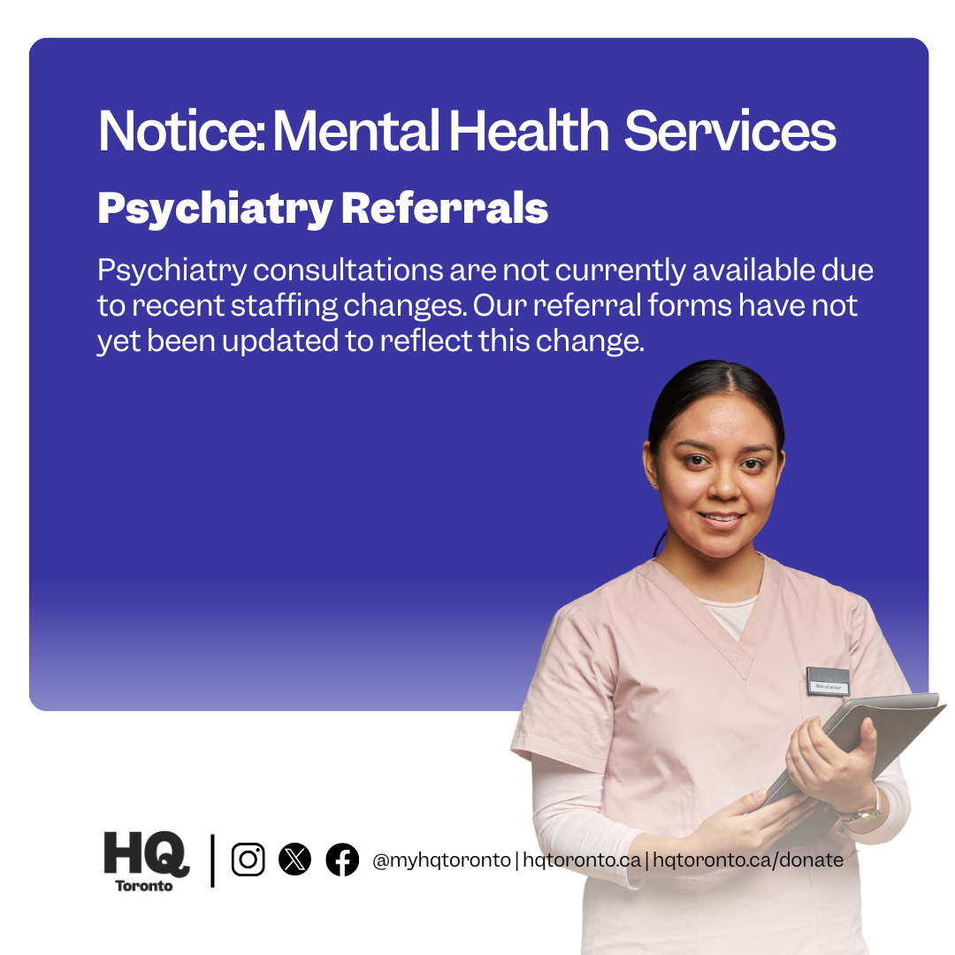 If you require crisis support, you may access free, 24-hour, 7-days per week telephone support at the Toronto Distress Helpline: 988